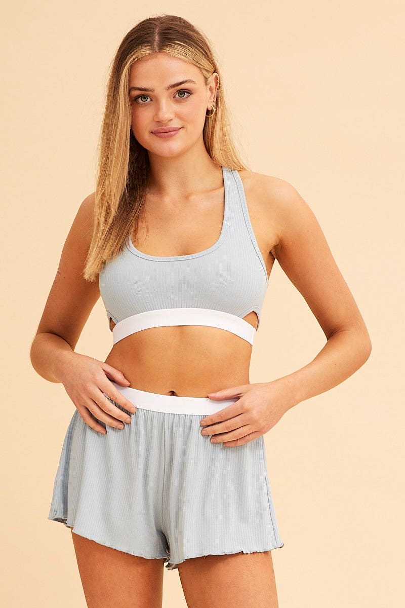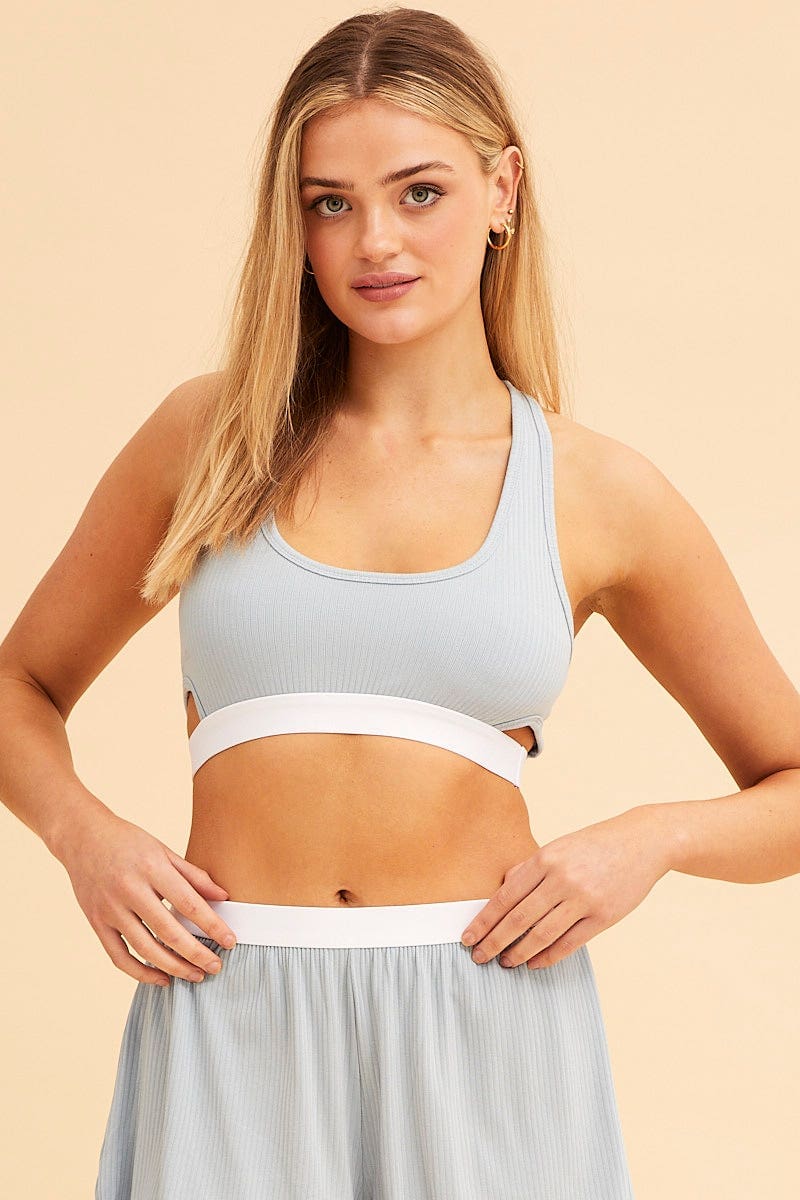 Blue Mia Cotton Stretch Cross Back Crop Top