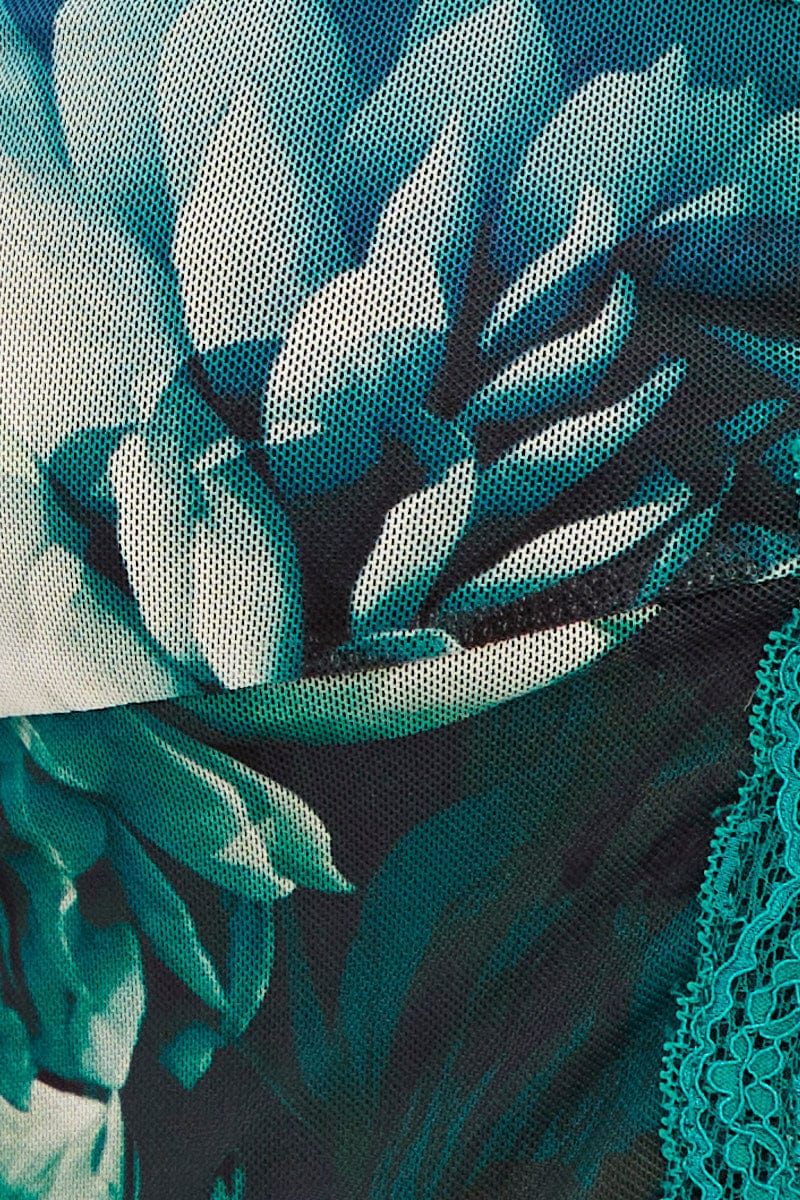 Green Floral Butterfly Top Short Sleeve Crop Mesh Bolero