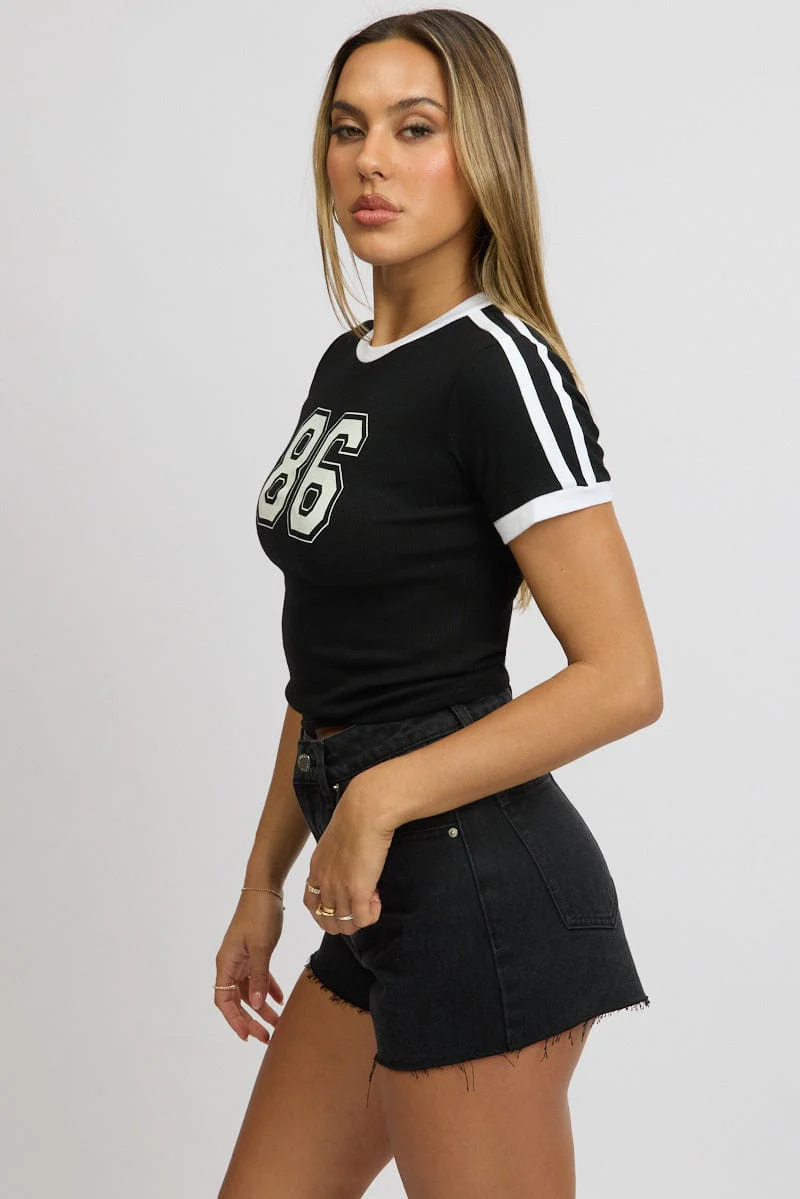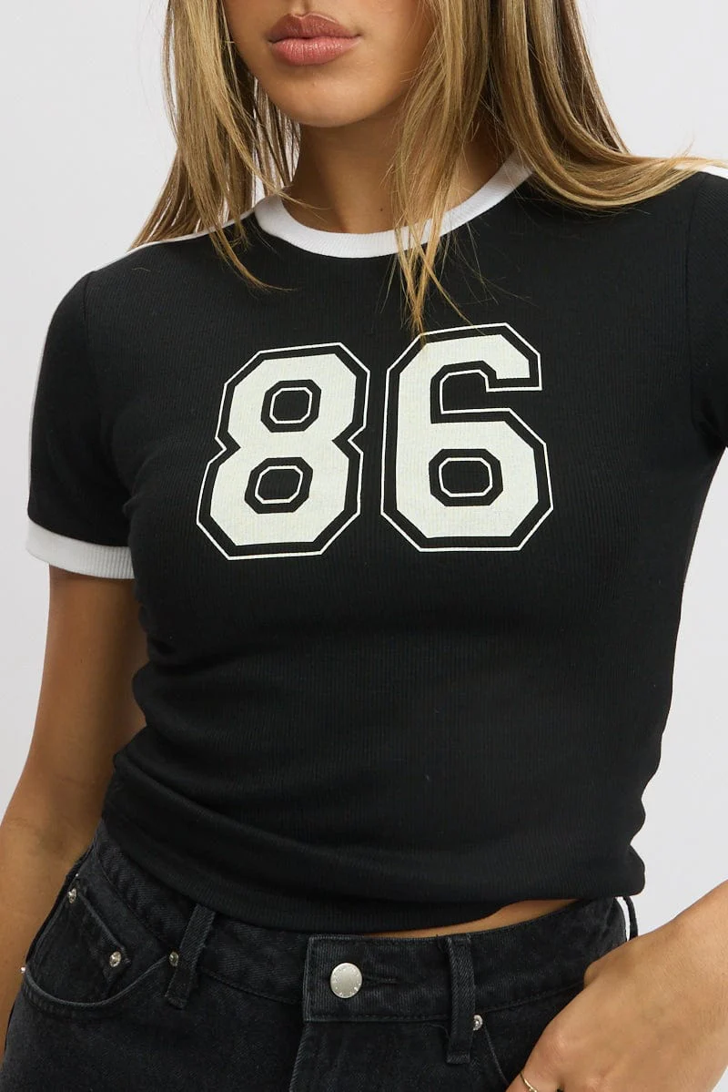 Black Graphic Tee Short Sleeve Contrast Binding