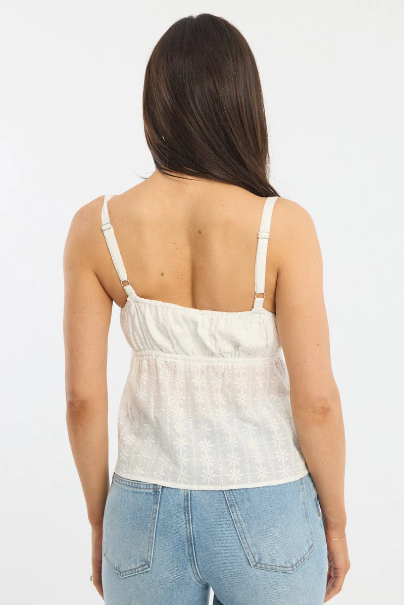 White Cami Top Sleeveless Babydoll Broidery Eyelet