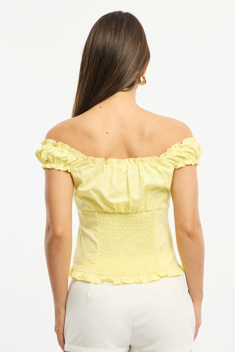 Yellow Top Short Sleeve Gathered Bust Pleated Detail