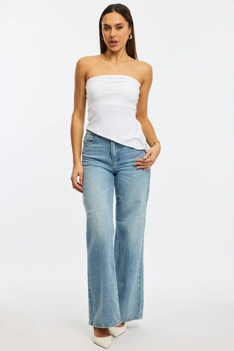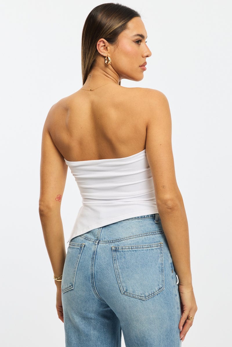 White Bandeau Top Asymmetric Hem