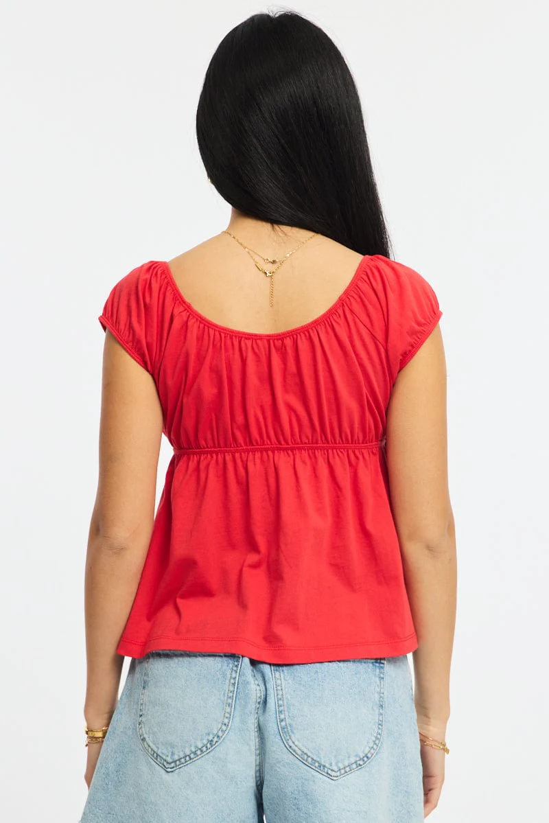 Red Baby Doll Top Short Sleeve