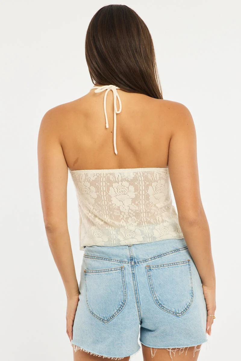 White Halter Top Sleeveless Lace