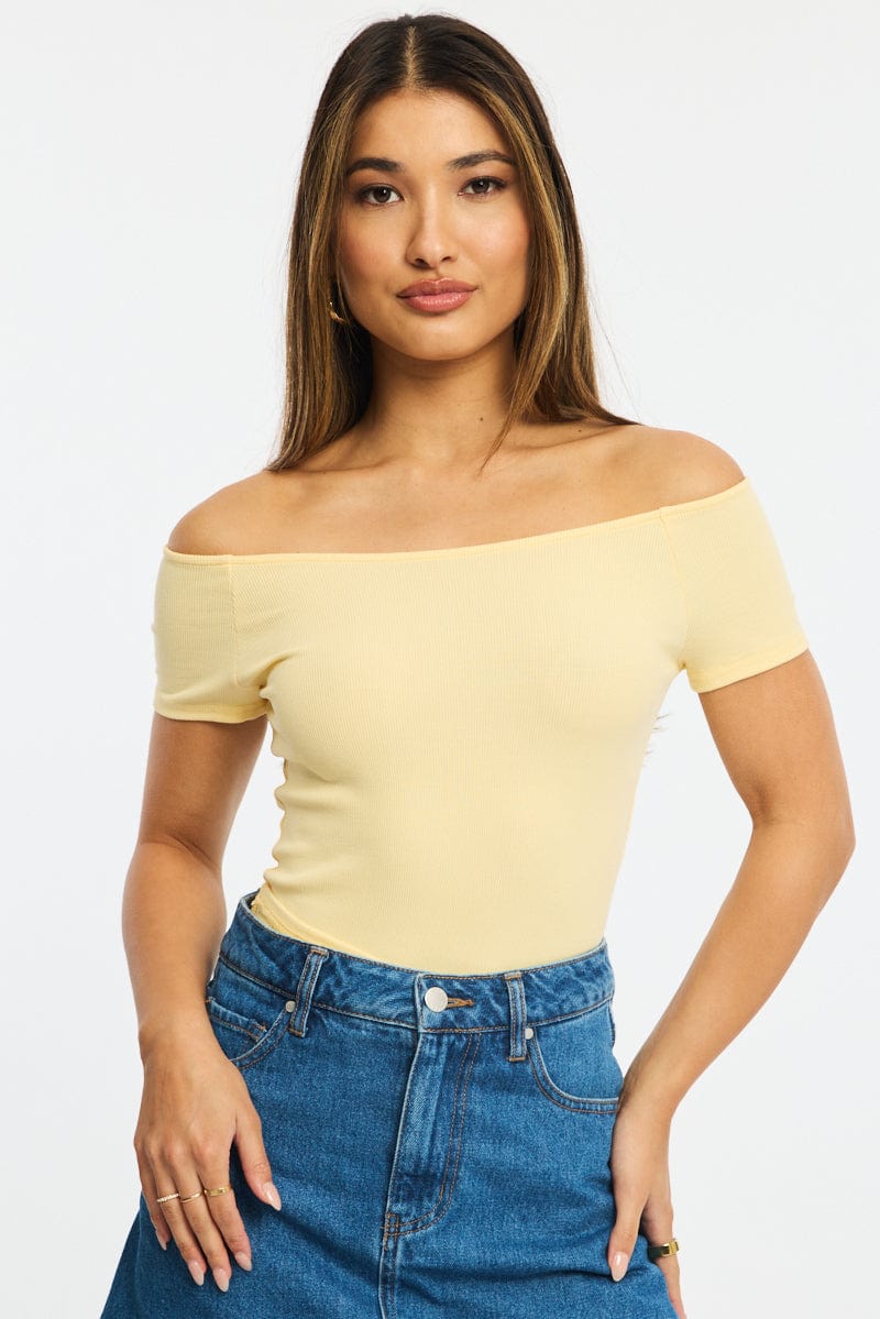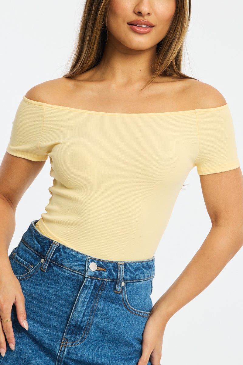 Yellow Off Shoulder Top Rib