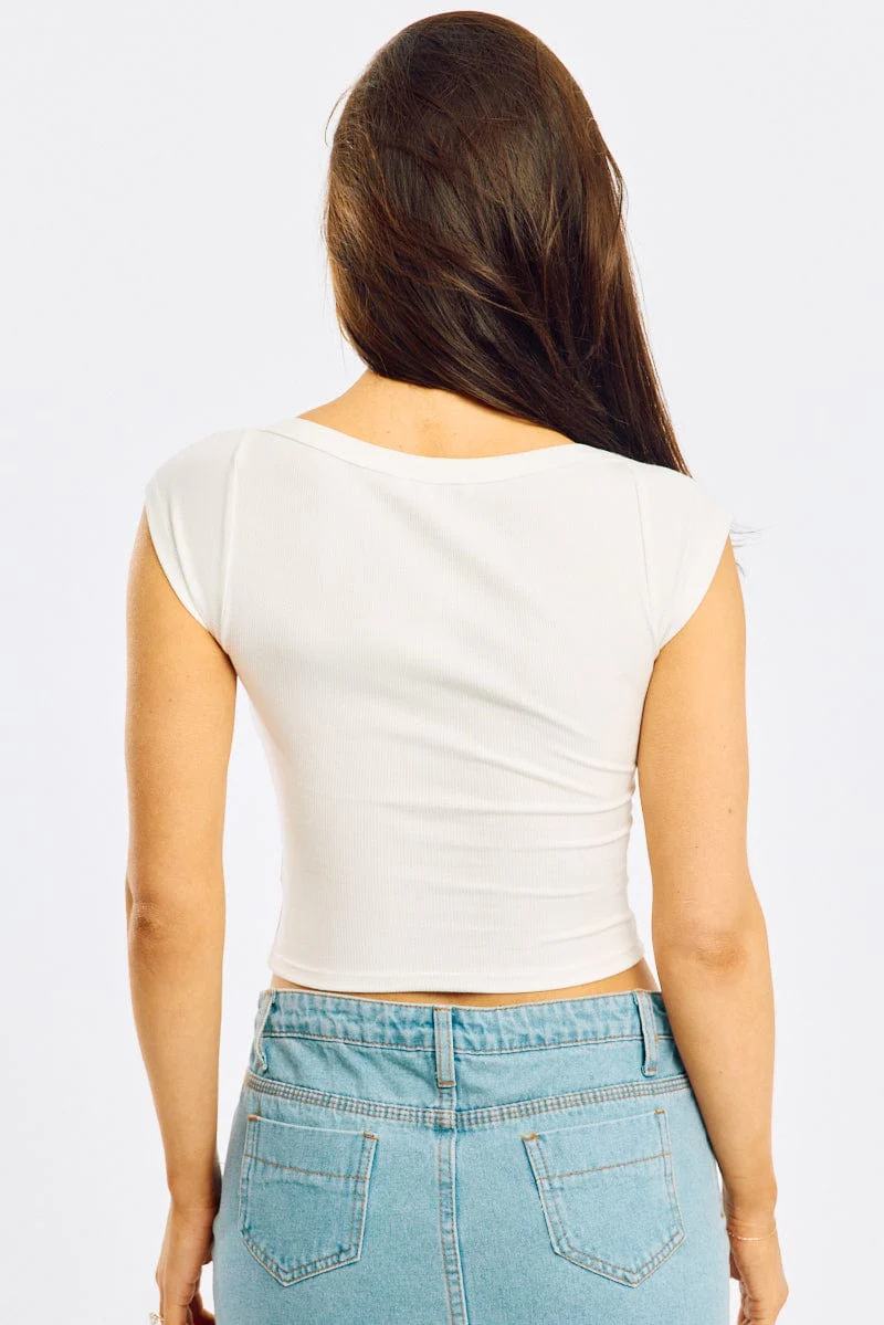 White Boat Neck Top Short Sleeve