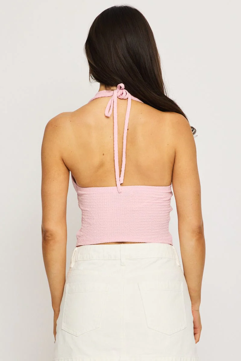 Pink Halter Neck Top Textured