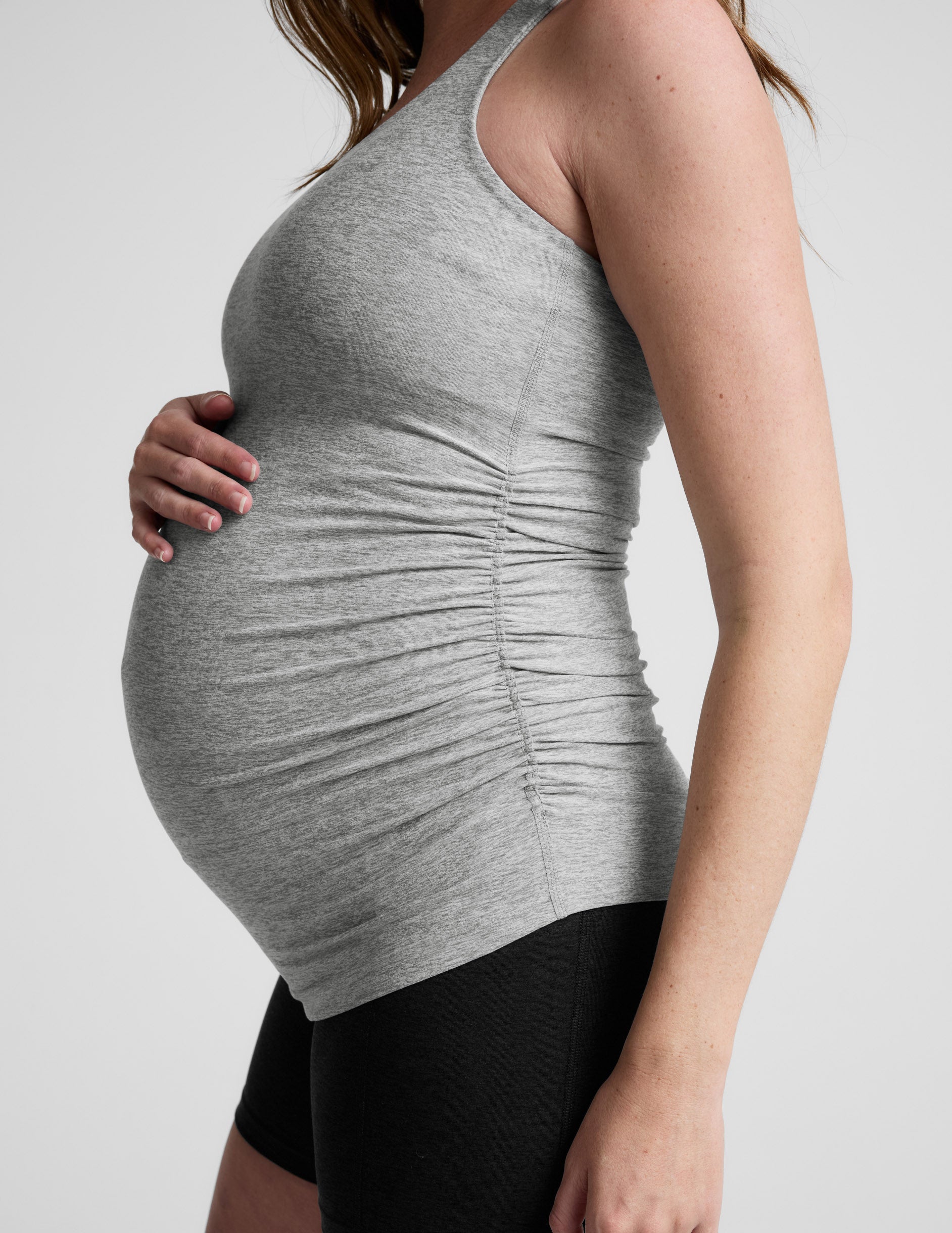 We've got all your bases covered with this essential maternity tank, Mama. Style sense you can feel great wearing, and comfort you can take absolutely anywhere in one active maternity tank top design. Made from our insanely soft Spacedye fabric featuring a form-flattering long length, built-in bra with medium support, racerback design and shirred sides for your best fit during pregnancy and 4th trimester.