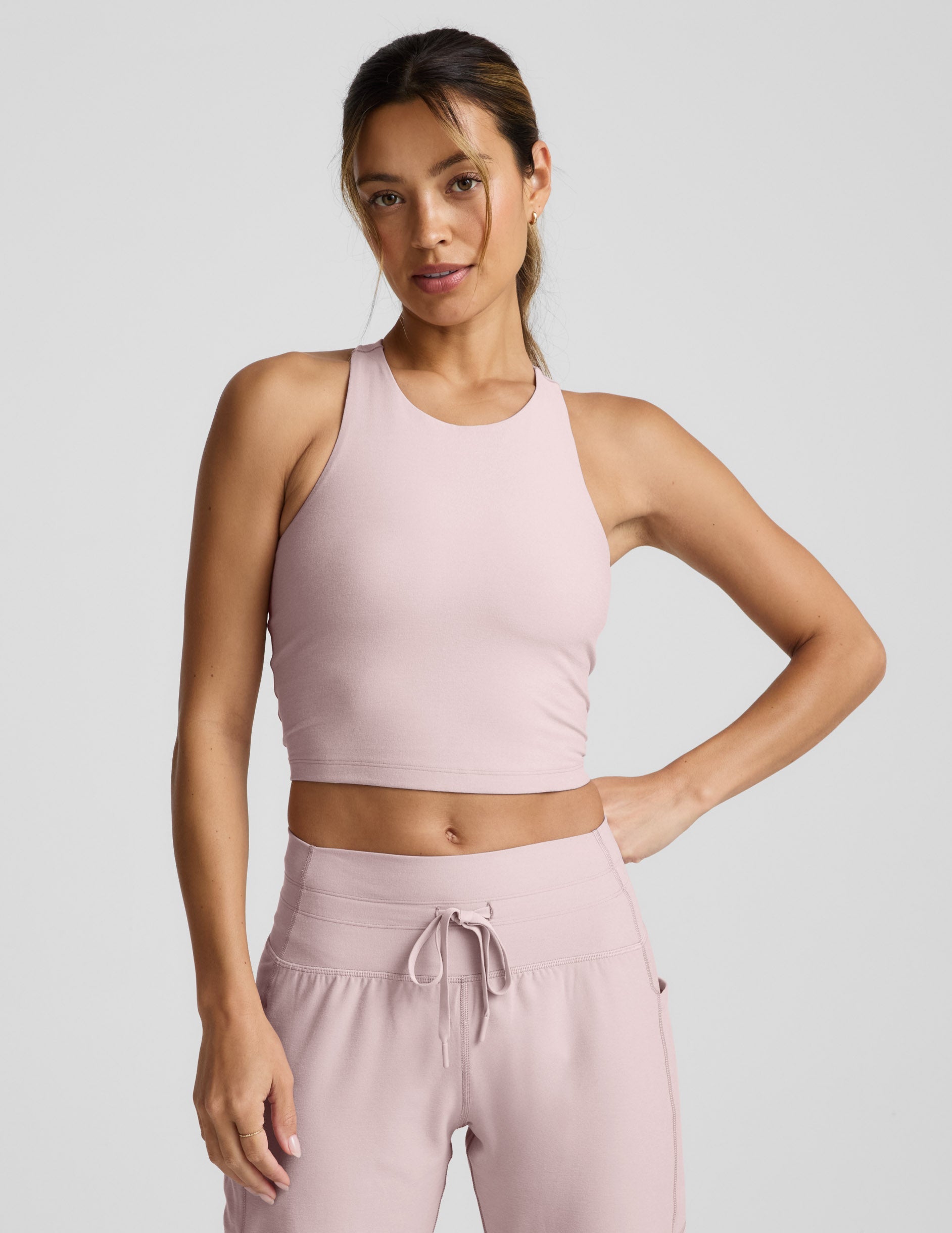 High potential. A new take on our bestselling Slim Racerback Cropped Tank with a higher scoop neck, but the same softness, built-in bra and cropped length you love. Pair with the matching Spacedye Midi Legging or use as the perfect base layer and style an outfit.