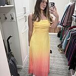 Twirl around in the most romantic style around. The Sunset Magic Strapless Pleated Maxi Dress features a neck scarf, an ombre design and a crisscross back. Style with heels to impress.